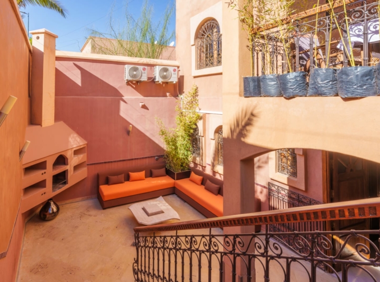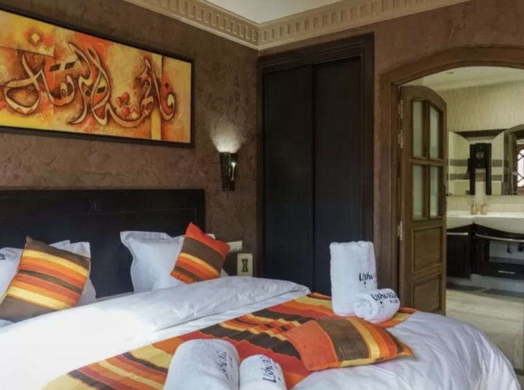 Découvrez ce somptueux hôtel particulier de 11 chambres et 11 salles de bain, idéalement situé dans le quartier prestigieux de Targa-Gueliz à Marrakech. Proche de tous les lieux stratégiques de la ville rouge, cet hôtel particulier se trouve à seulement 10 minutes de l’aéroport et de la célèbre place Jamaâ el Fna, et à 1,5 km du centre de Gueliz.